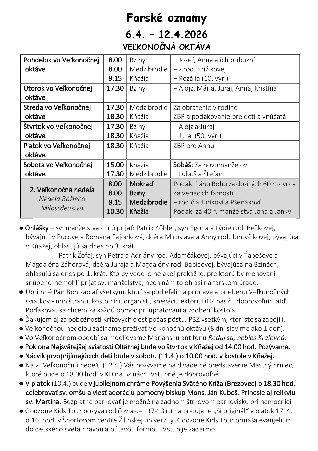 Pozývame Vás na celodennú poklonu do farského kostola v Kňažej (9.00 – 18.30 hod.).
